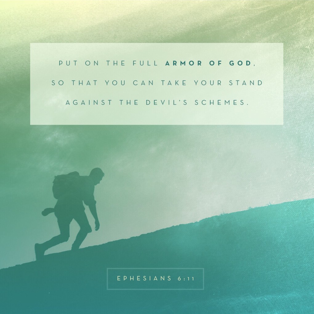 Let’s unpack this idea of the devil scheming against us; let’s shed some Light on his darkness. Ephesians 5:13 says that “everything exposed by light becomes visible” and if we can see our enemy clearly, we can fight all the more effectively. James 4:7 “Submit yourselves, then, to God. Resist the devil, and he will flee from you.” To me, learning to clothe ourselves in His armor, stand in His strength, wield His weapons, and fight His enemy is an exercise of submission.